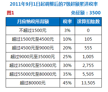 (2)如果月收入<3500,先用年终奖补足月收入与3500的差额,剩余部分再除以12,用此结果匹配图1得到适用税率和相应的速算扣除数